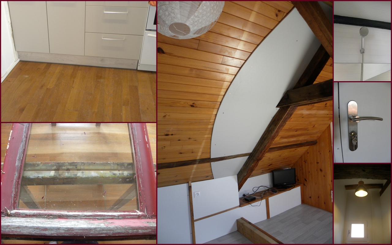 - découpage, dernière couche de peinture et pose des contreplaqués gris pour la chambre des combles, des dernières plinthes du salon-séjour