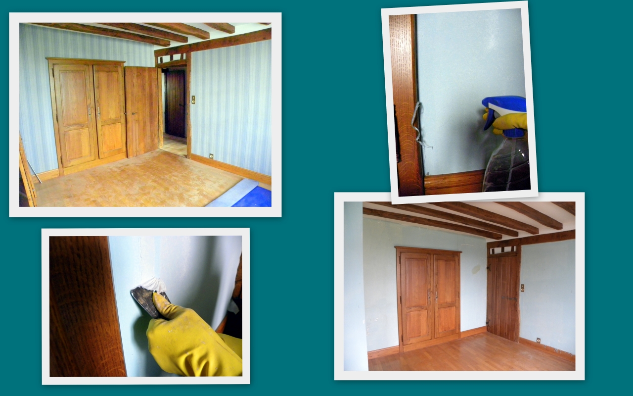 Ce week-end, avec l'aide de toute la famille B. nous avons detapisse'! Le décollage de papier peint n'a plus de secrets pour nous depuis les travaux de notre maison il y a 2 ans! Outillés jusqu'aux dents, nos champions ont détapissé 3 chambres, 1 SDB et 1 WC en une journée (il paraîtrait même qu'ils ont eu le temps de faire une pause au restau' d'à côté...).
