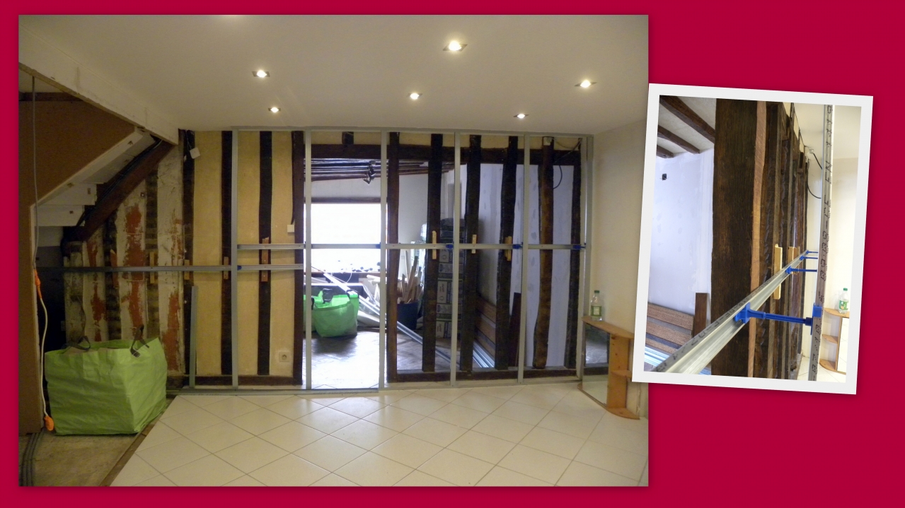Nous prévoyons de poncer les ouvertures & leurs cadres et de peindre les poutres.