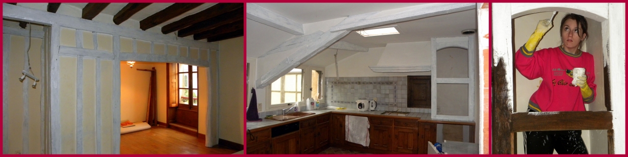 On peint les menuiseries, pour changer des poutres. François fera son local technique pour la colonne montante d'ERDF qui alimentera les 4 compteurs électriques.